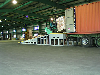 倉庫面積5,000u(1,500坪)の倉庫です。あなたの大切なお荷物をお守りいたします。また、海上コンテナ用スロープも常備しています。